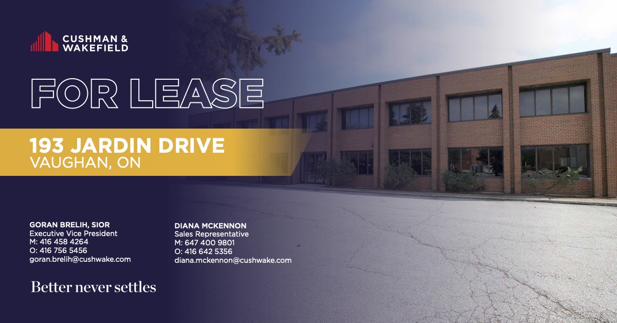 Looking for a freestanding industrial building for lease in Vaughan, just north of Toronto, with excellent highway exposure and functional shipping? 193 Jardin Drive offers a rare small- to mid-bay industrial facility in a prestige employment zone with immediate occupancy.