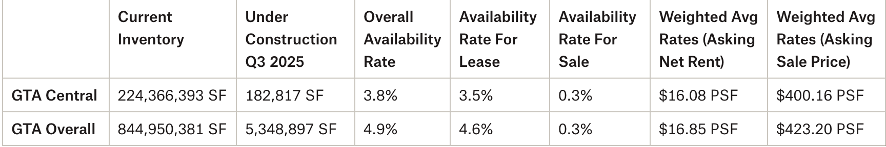 Q3 2025, GTA Industrial Market Overview – Source: Cushman & Wakefield