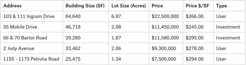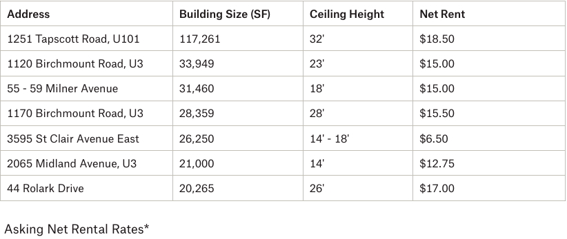 - Development Opportunities: Looking across the Toronto-Central markets, there is still great interest from developers to purchase infill sites and redevelop older and obsolete industrial buildings to newer, modern distribution centres, as well as industrial condos. Given its central location and proximity to major highways and labour, larger industrial sites in the Toronto-Central markets will continue to be in great demand.