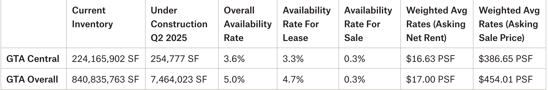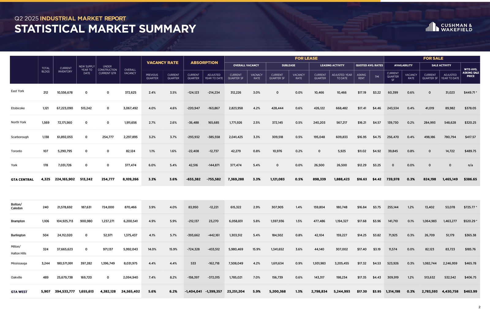 Q2 2025, GTA Industrial Market Overview – Source: Cushman & Wakefield