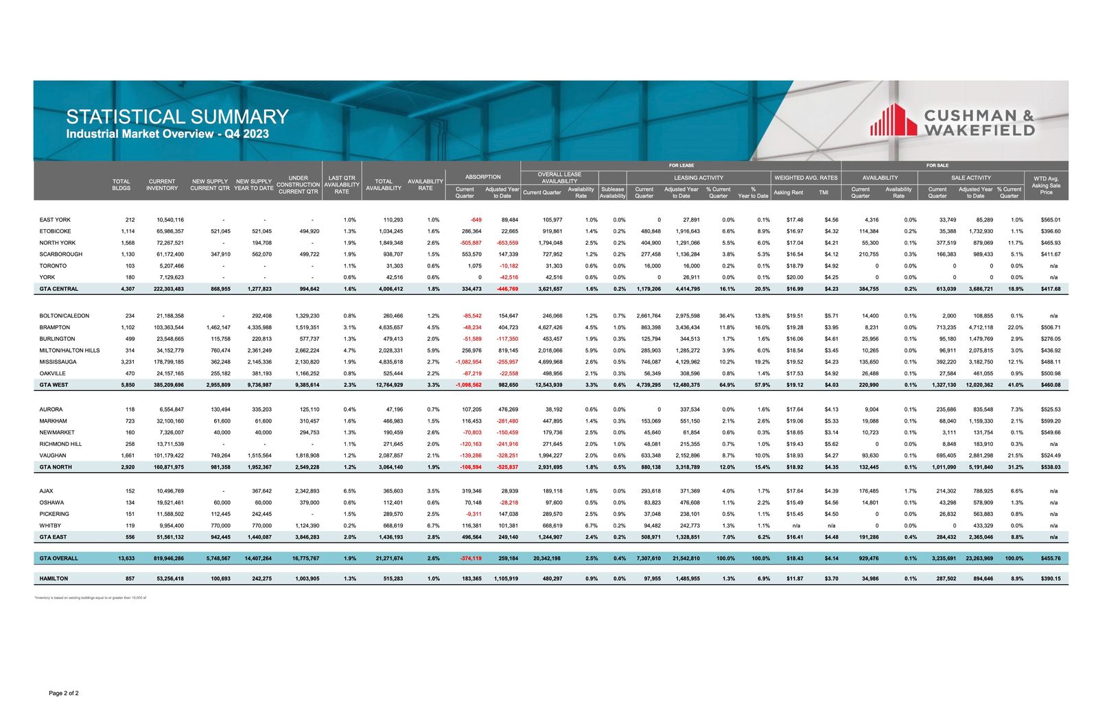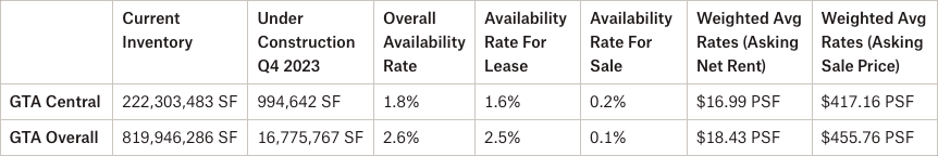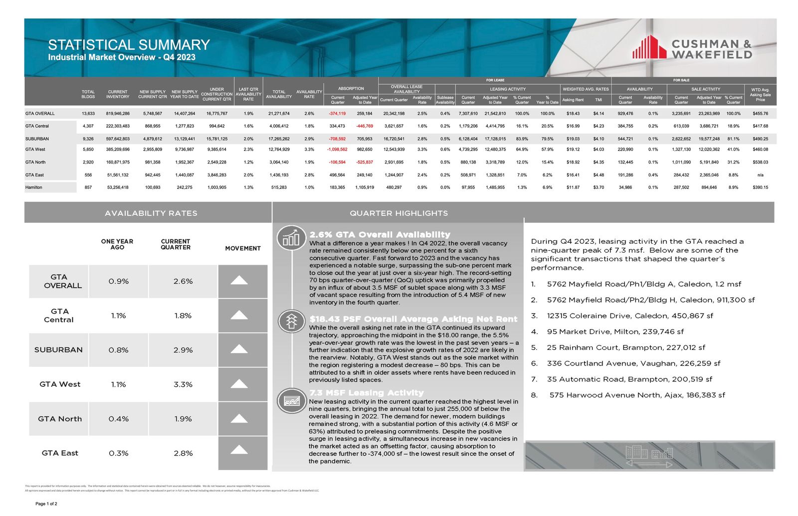 Q4 2023 GTA Industrial Market Overview – Source: Cushman & Wakefield