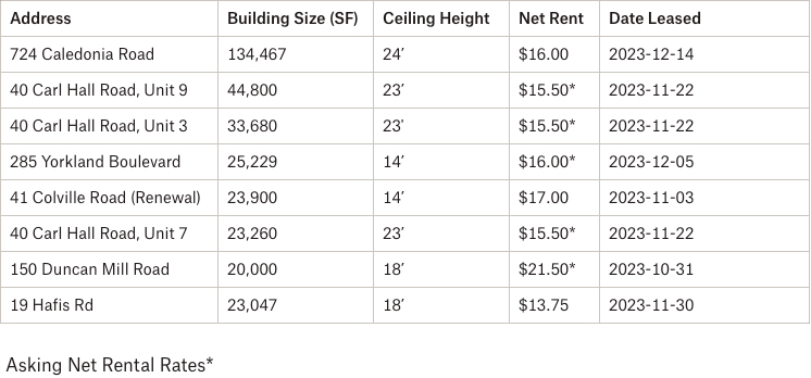Properties Leased between October 2023 – December 2023, from 20,000 SF plus