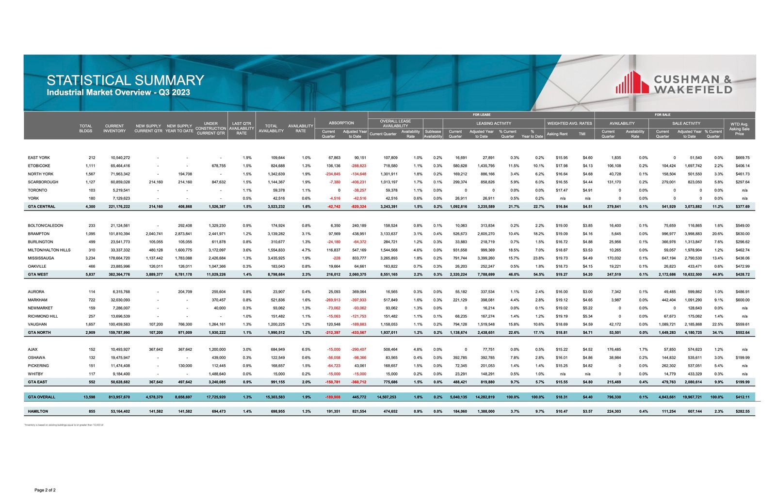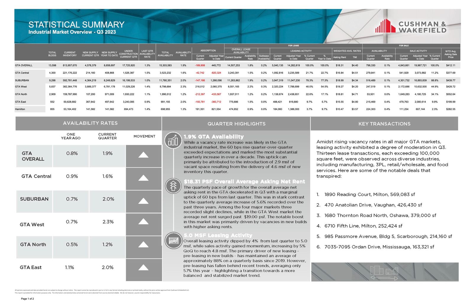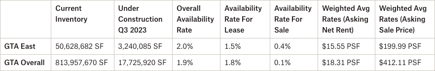 Q3 2023 GTA Industrial Market Overview – Source: Cushman & Wakefield