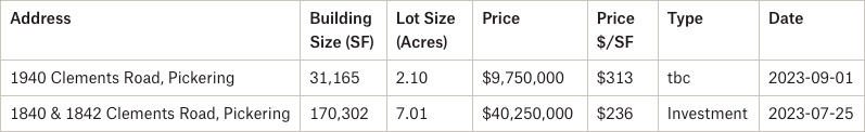 Panattoni is developing 2 industrial facilities totalling 770,000 SF at 4680 Garrard Road in Whitby. Building A will offer 645,000 SF of space with a 40’ clear height, 105 truck-level and 8 drive-in doors, while Building B will be 125,000 SF in size with a 36’ clear height and 22 truck-level and 1 drive-in doors. Delivering in late 2023, we expect this project to attract one of the many retailers and 3PLs looking for high-quality space with excellent access to Highway 401 and the labour pool.